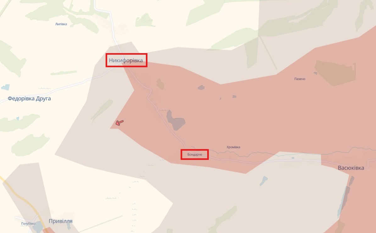 Населені пункти Никифорівка та Бондарне у Донецькій області перебувають під контролем Сил оборони України.