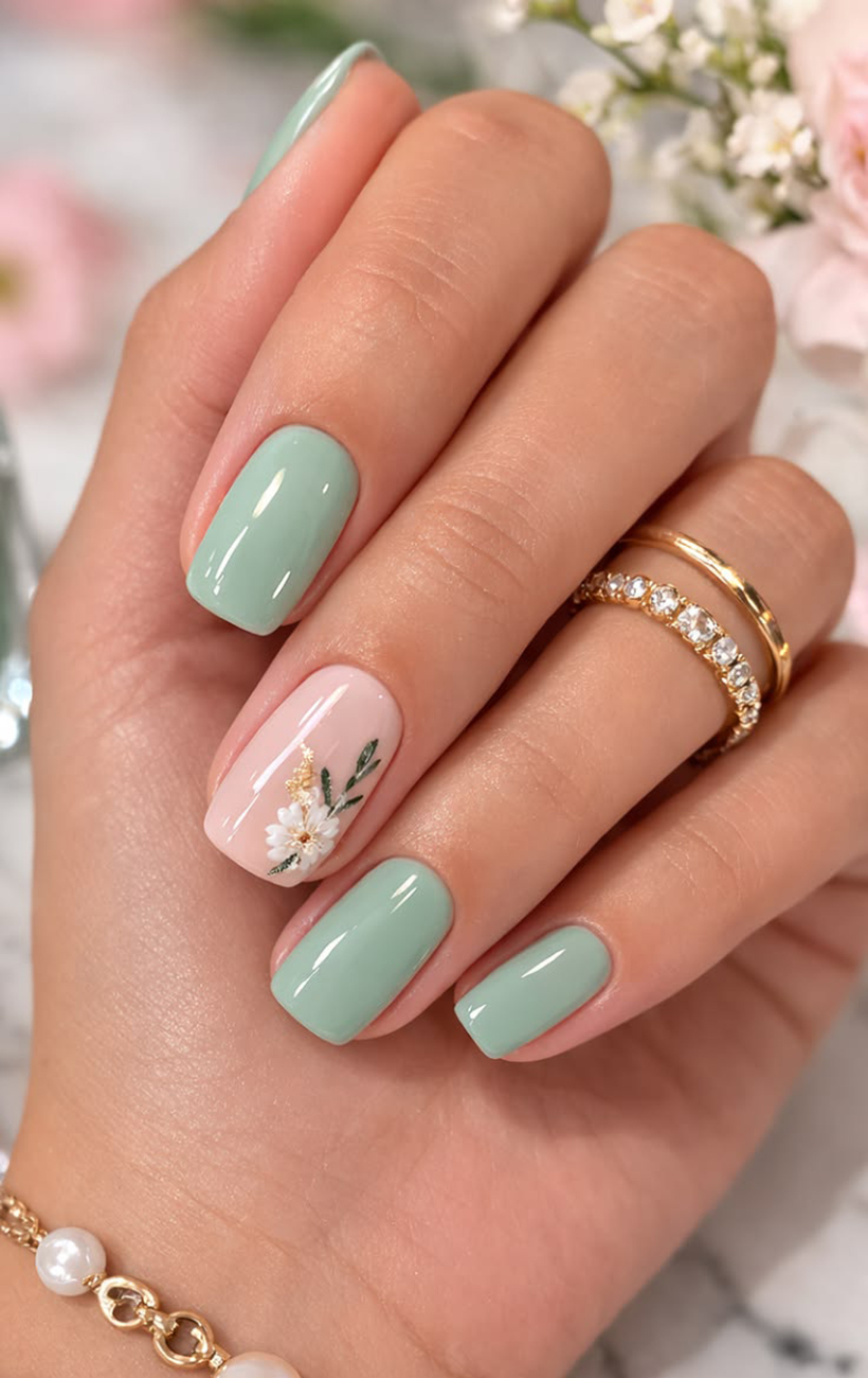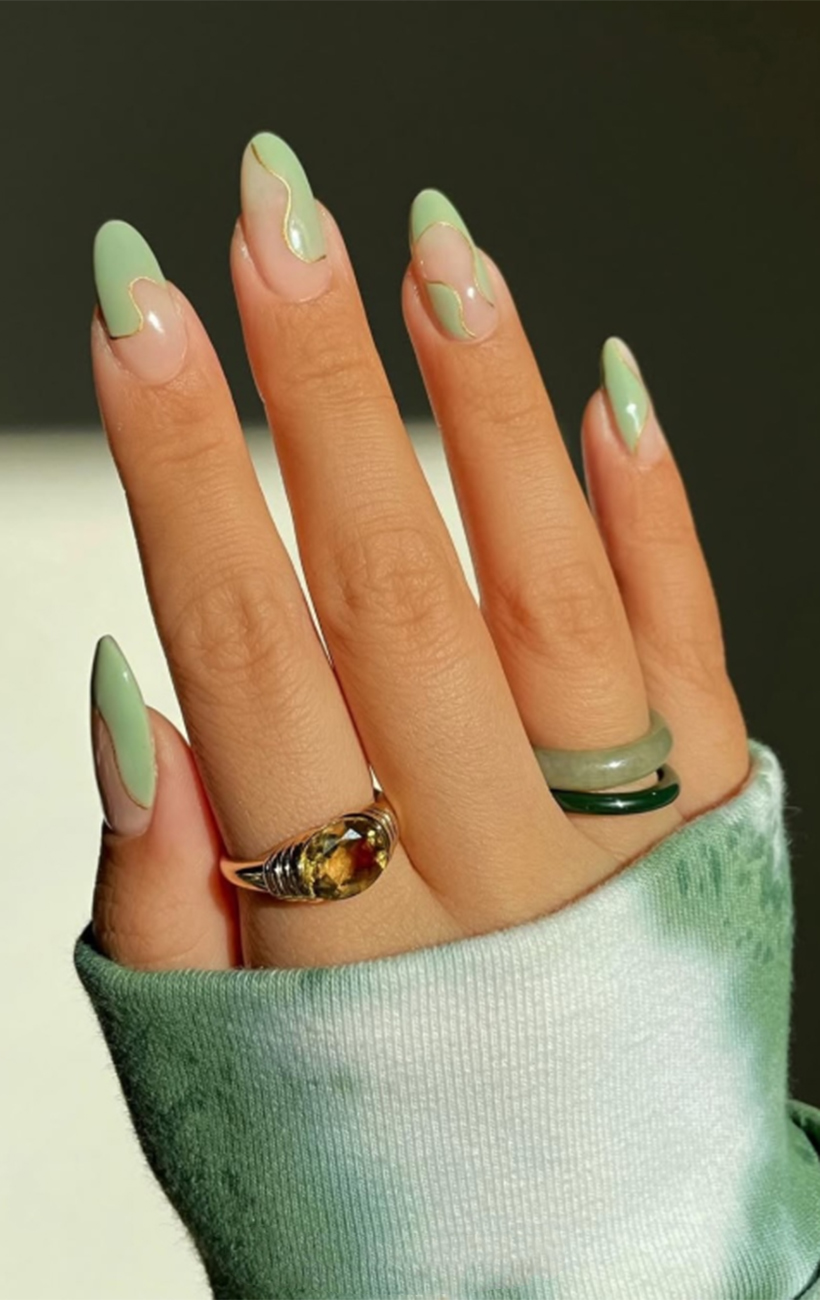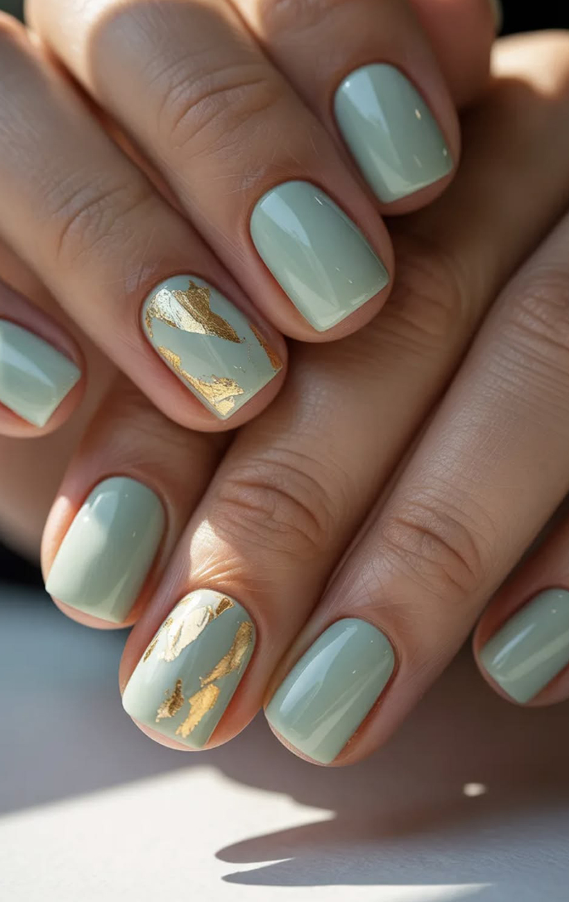 Ментоловий відтінок чудово підходить як для однотонного манікюру, так і для більш креативних рішень: